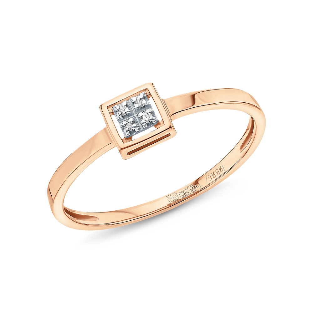 Кольцо с 4 бриллиантами природными, 0.01 карат, огранка круг 17 граней, цвет 2, чистота 2, тип огранки А;