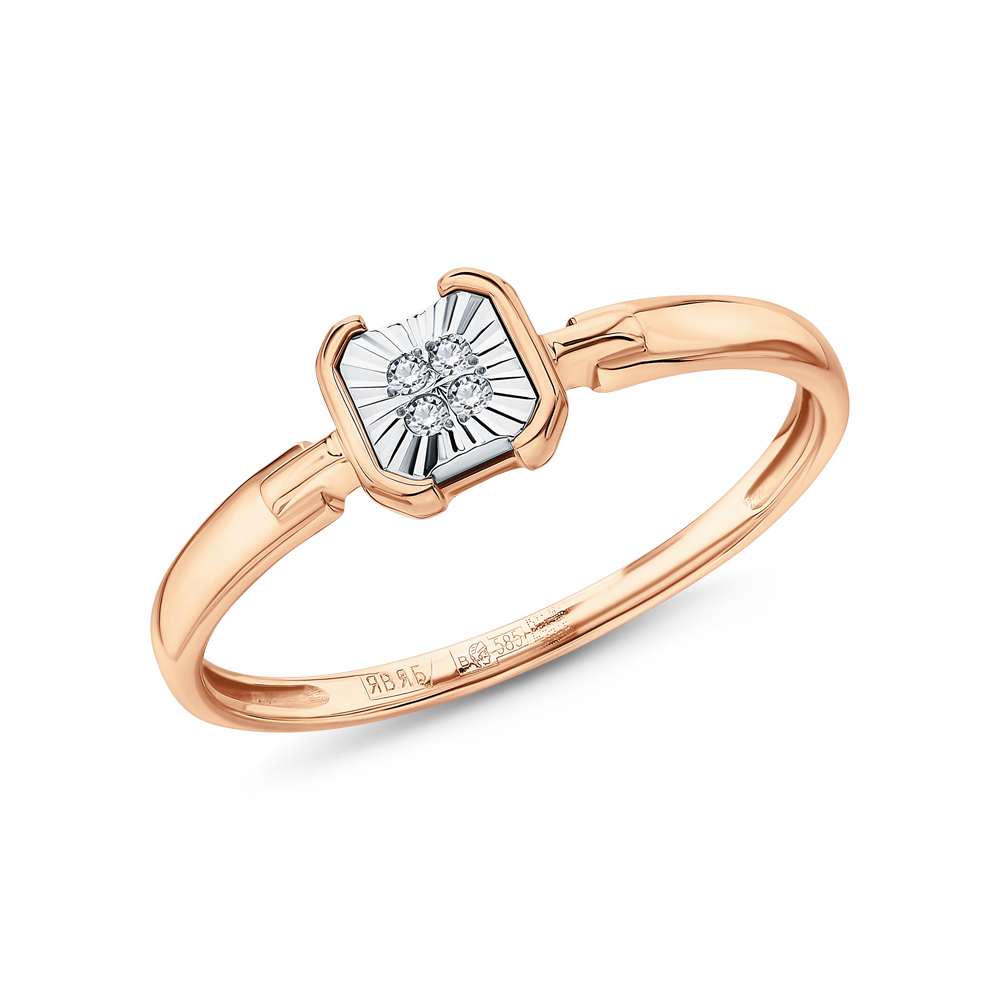 Кольцо с 4 бриллиантами природными, 0.01 карат, огранка круг 17 граней, цвет 2, чистота 2, тип огранки А;