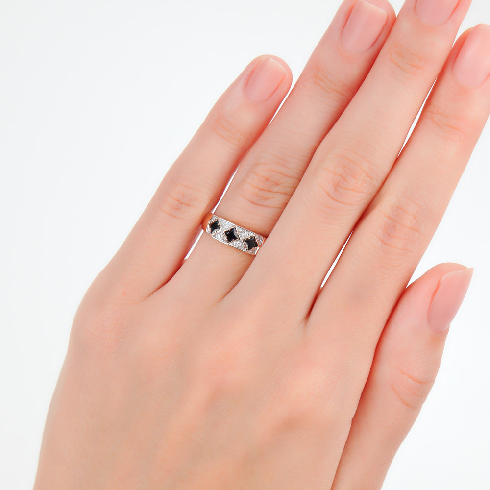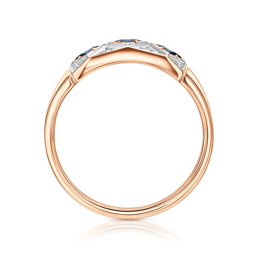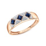 Золотое кольцо с бриллиантами природными и сапфирами природными