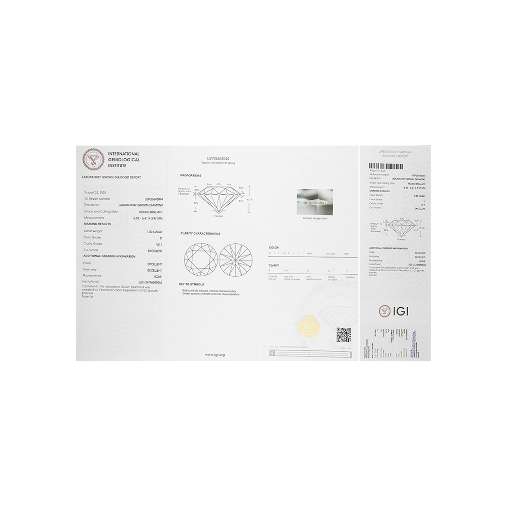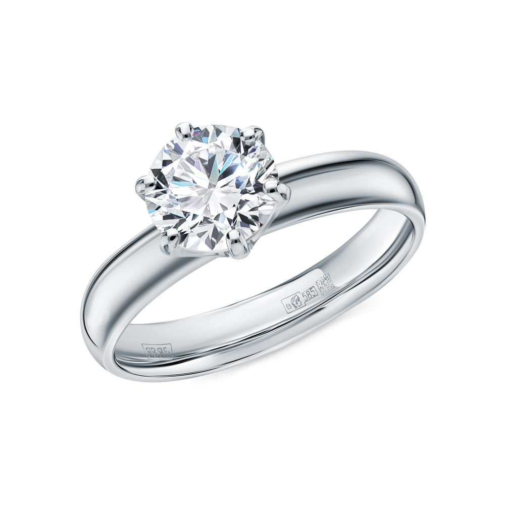 Кольцо с 1 бриллиантом выращенным, 1.01 карат, огранка круг 57 граней, цвет 4, чистота 5, тип огранки А;