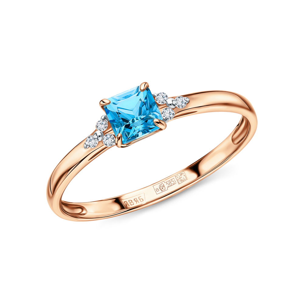 Золотое кольцо с бриллиантами природными и топазами природными