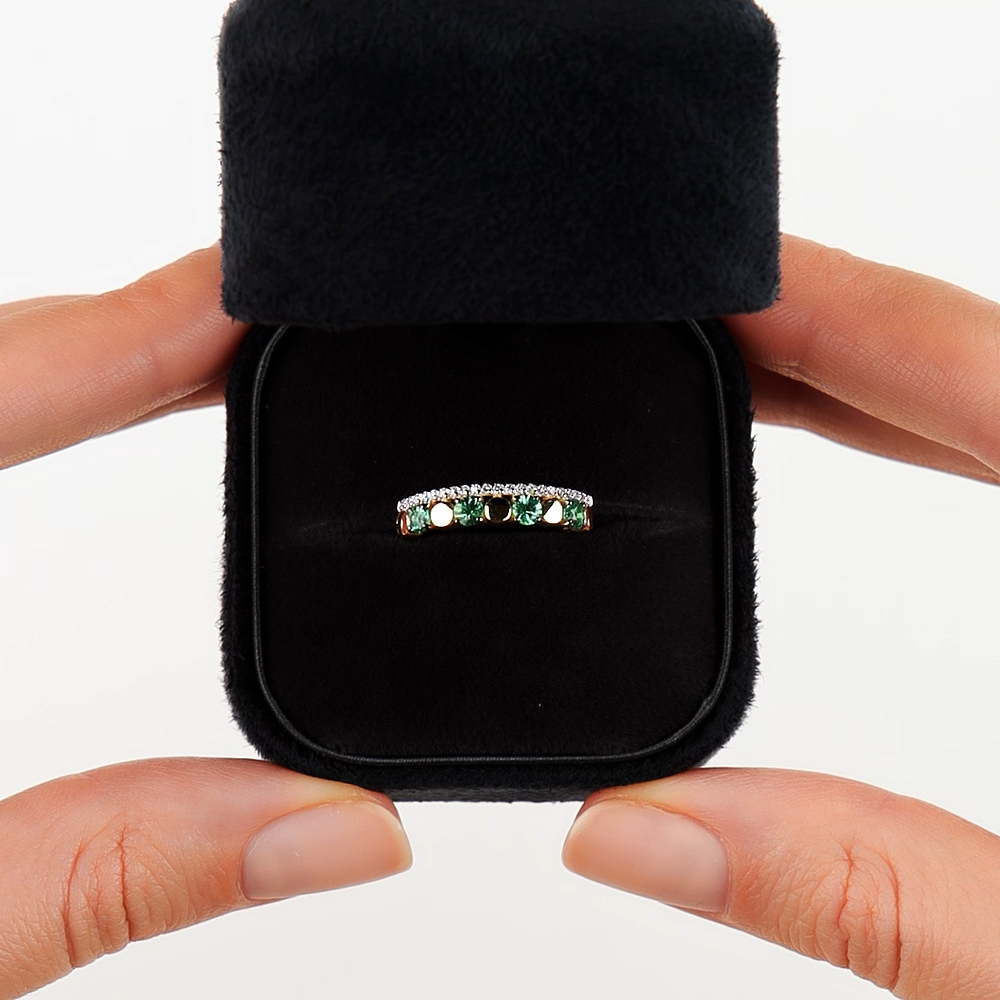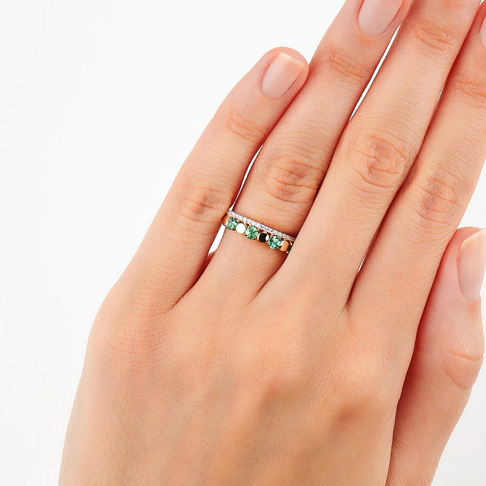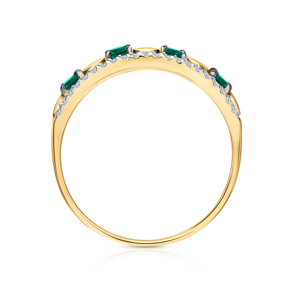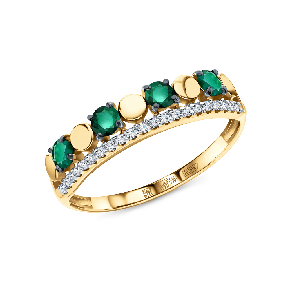 Золотое кольцо с бриллиантами природными и изумрудами природными
