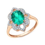 Золотое кольцо с бриллиантами природными и изумрудами выращенными
