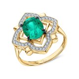 Золотое кольцо с бриллиантами природными и изумрудами выращенными