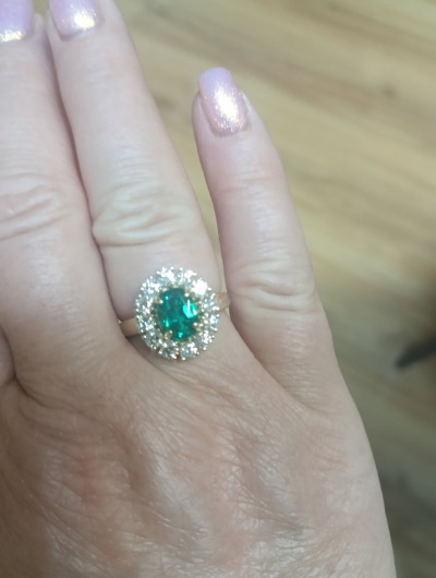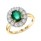 Золотое кольцо с бриллиантами выращенными и изумрудами выращенными