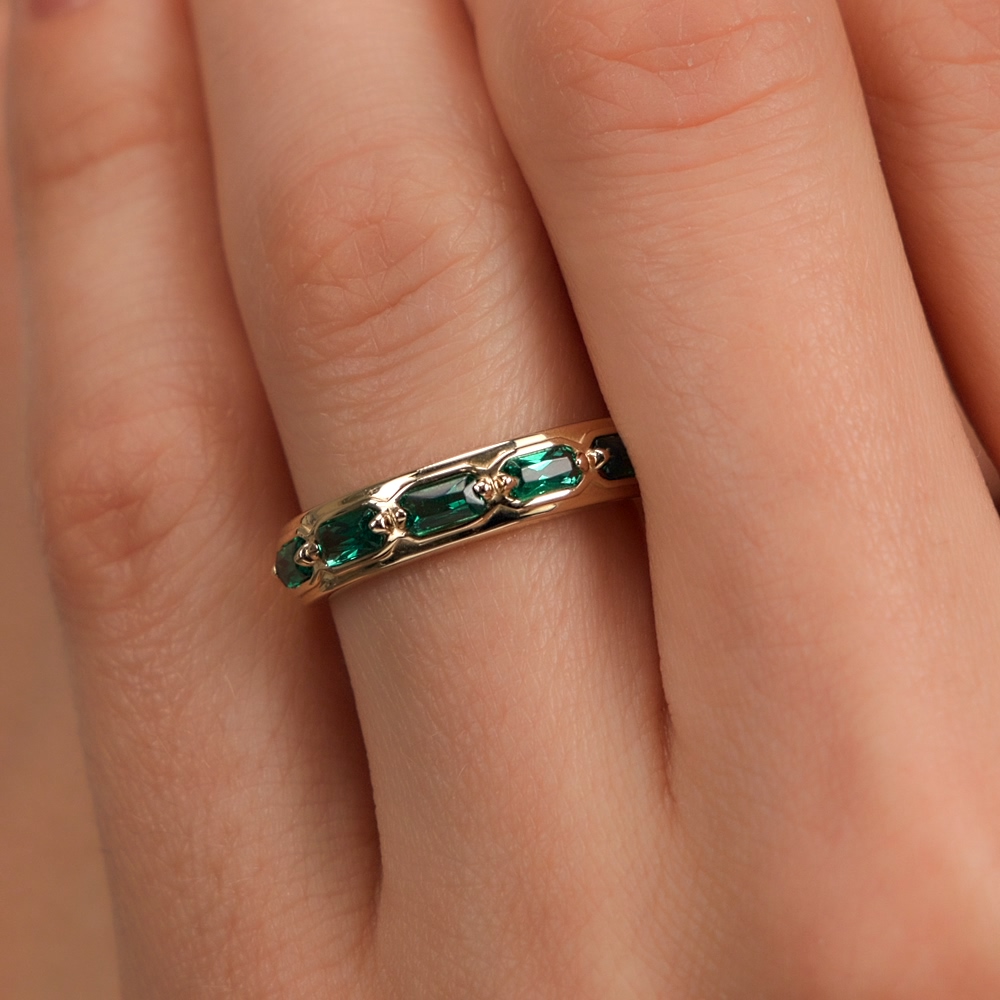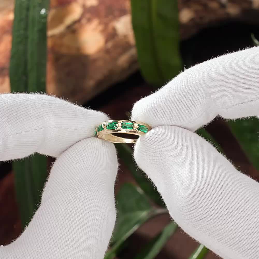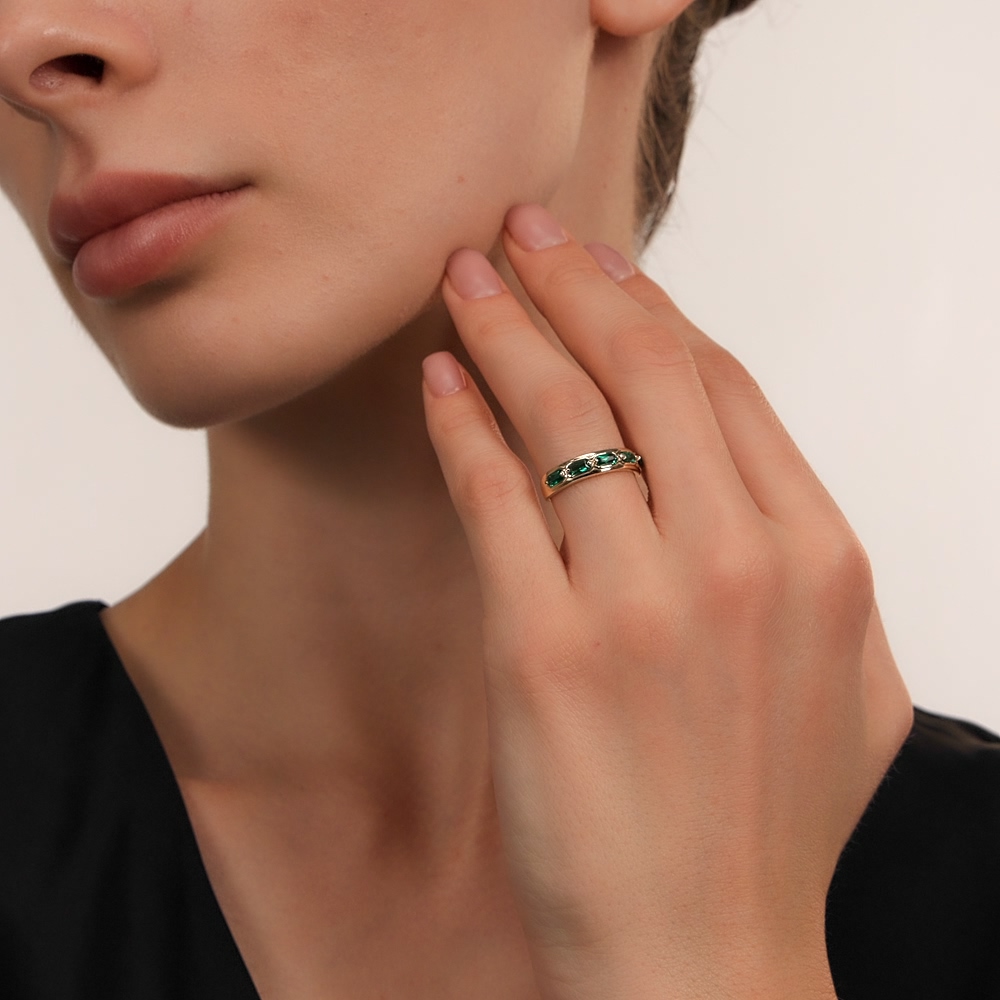 Кольцо с 5 гидротермальными изумрудами, 0.47 карат;
