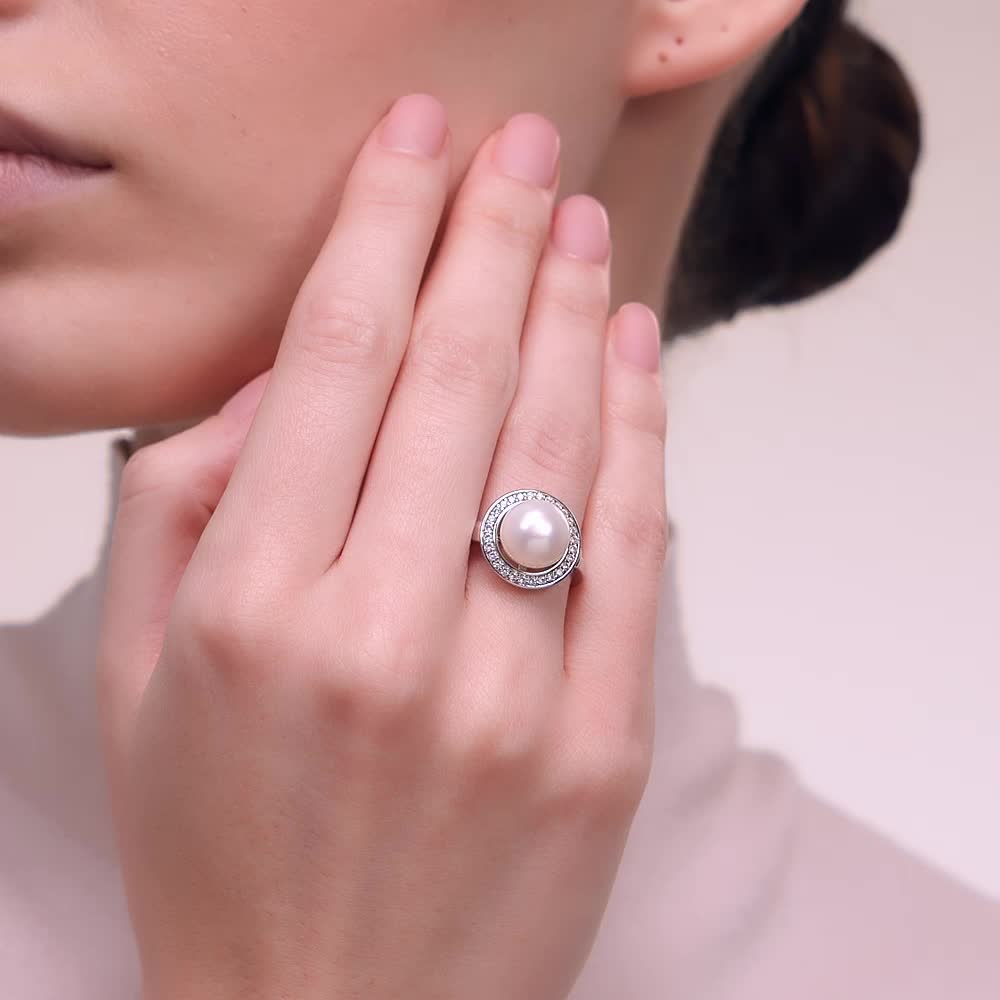 Серебряное кольцо с жемчугом природным и фианитами