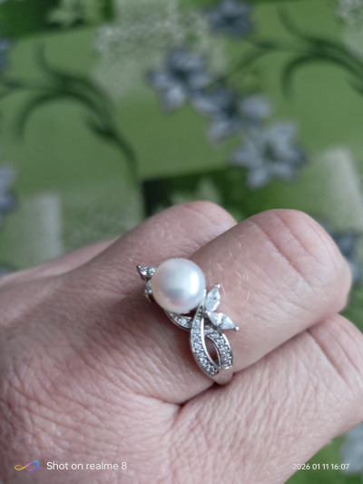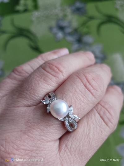 Нежностью своей покаряет колечко из серебра с жемчугом и фианитами. Цветочный арнамент настраивает на романтический стиль. Тонко и изысканно выглядит на пальчике, спасибо Санлайт за акции