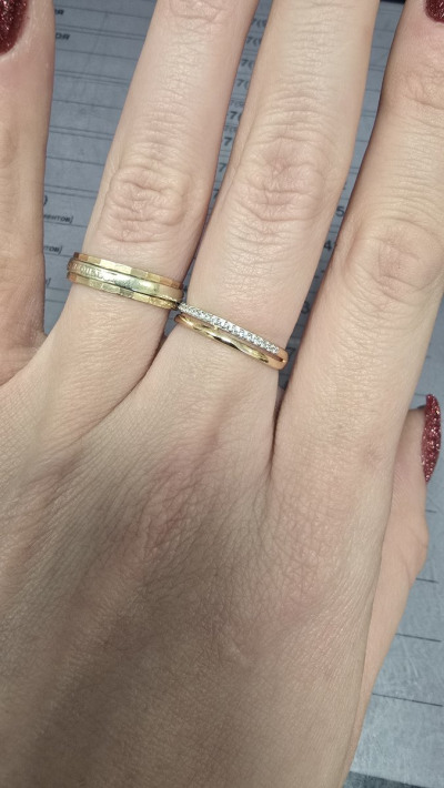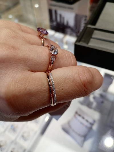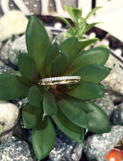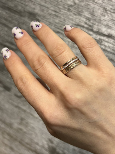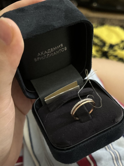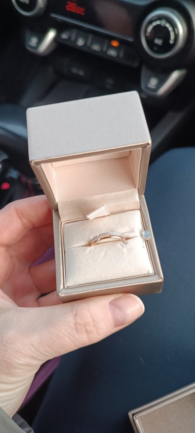 Взяла в дополнение у обручальному кольцу. Очень нежно смотрится, как само по себе так и в паре. Фианиты очень красиво мерцают от освещения ламп, на фото и видео это не получается передать. Идет в размер.