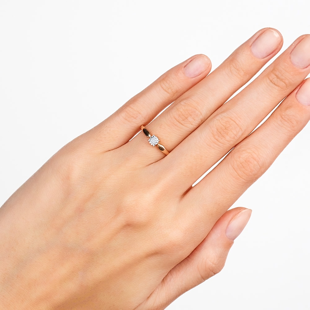 Кольцо с 1 бриллиантом природным, 0.027 карат, огранка круг 57 граней, цвет 3, чистота 5, тип огранки А;