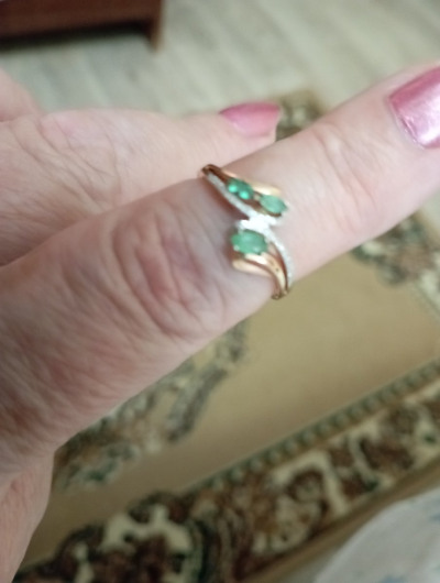 Долго выбирала кольцо с натуральным природным изумрудом. 💎 Увидела это и оно оказалось идеальным. Красивые камни, не тусклые. На пальчике сидит красиво. Брали со скидкой, что тоже порадовало)