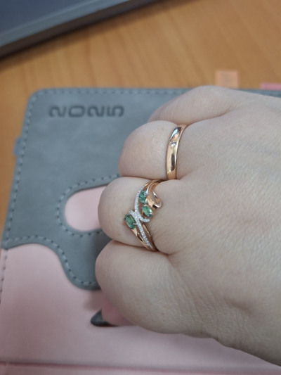 Кольцо 💍 очень красивое, нежное и сияющее. Изумруды смотрятся великолепно!!!!
