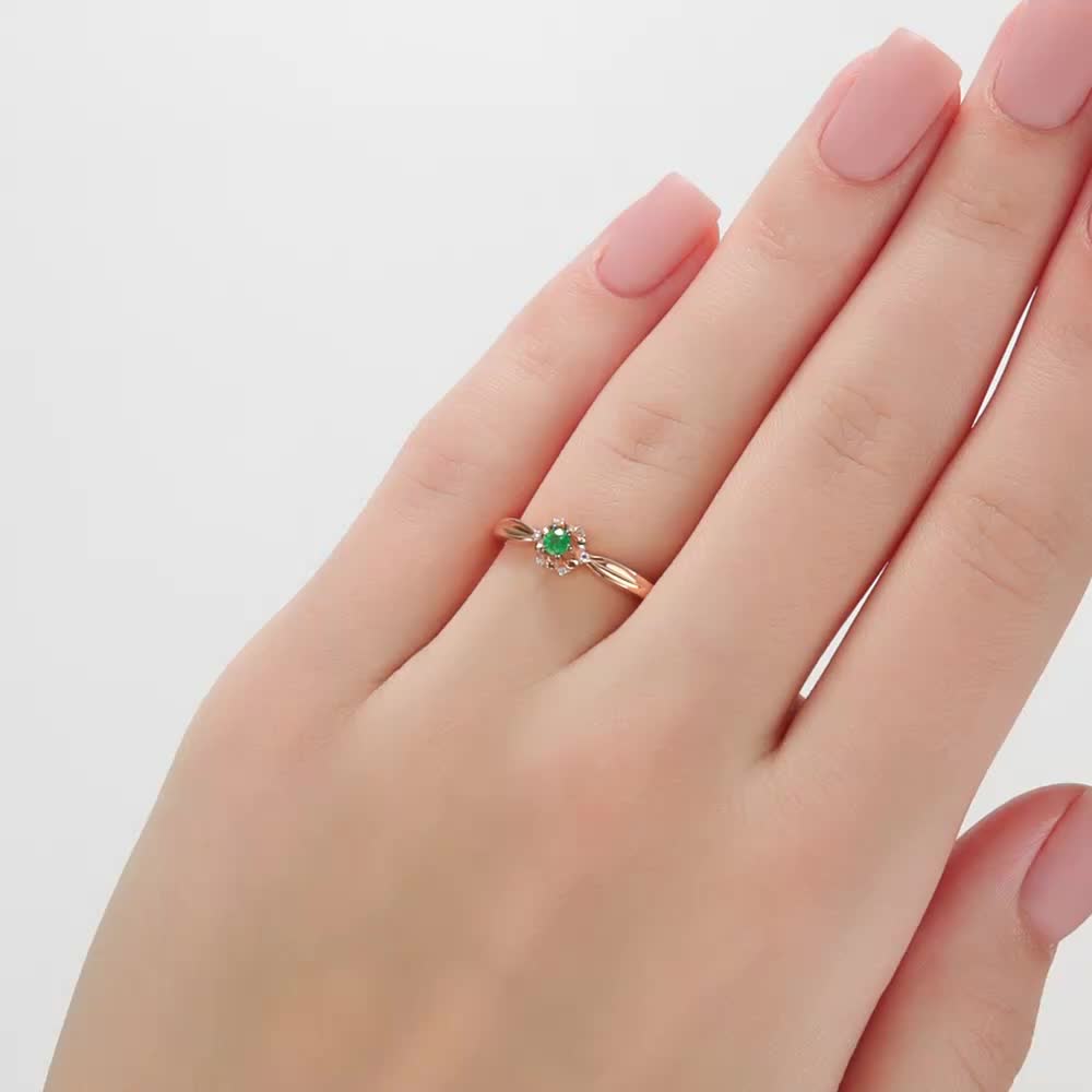 Золотое кольцо с бриллиантами природными и изумрудом природным