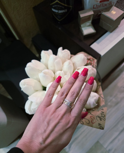 Очень давно хотела это кольцо. Муж подарил на 25-тилетие😍 моему счастью нет предела! Смотрится шикарно, богато, прям как я люблю 😌🤌🏻