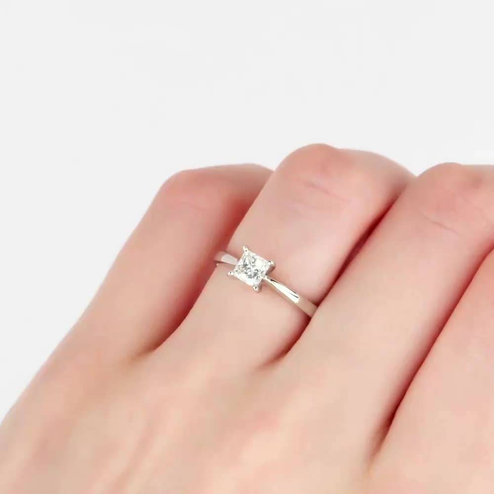 Кольцо с 1 бриллиантом природным, 0.5 карат, огранка принцесса 65 граней, цвет 4, чистота 6, тип огранки А;