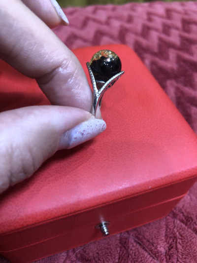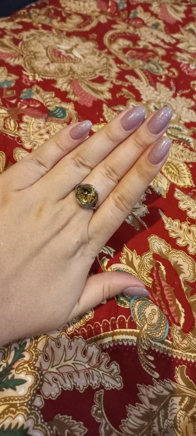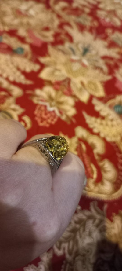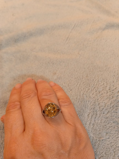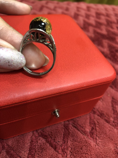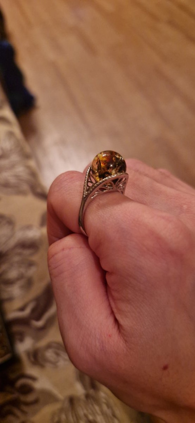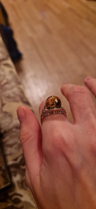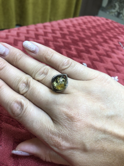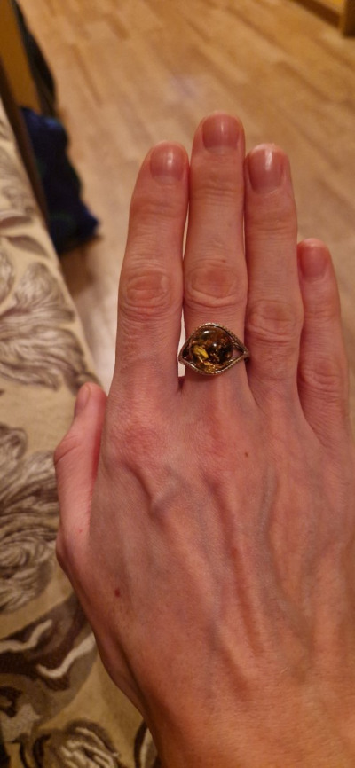 Очень красивое, выразительное кольцо. На сайте выглядит не так. В реальности намного интереснее! Большая красивая вставка из янтаря, цвет - загляденье!