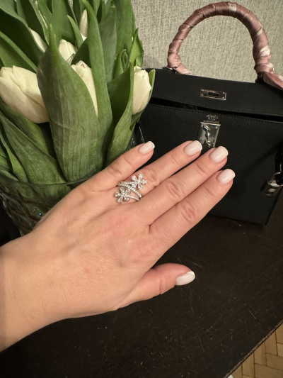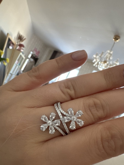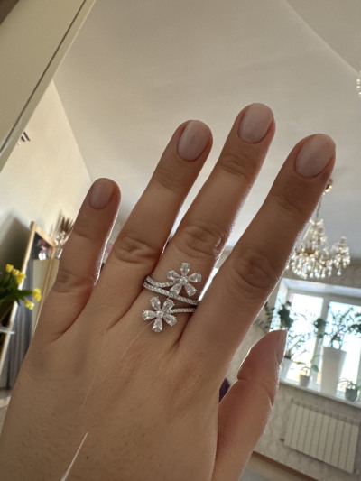 Шикарное кольцо, смотрится, как белое золото с бриллиантами.