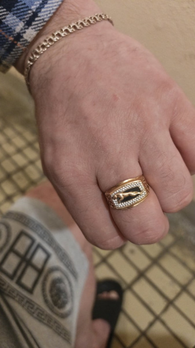 25 лет, это особая дата в жизни человека. Юбилеев много, но этот-на разломе двух событий… школа и институт позади. И детство, к сожалению тоже. А, впереди, новая, взрослая, самостоятельная жизнь. Ягуар в движении, в прыжке! Это символ развития, достижения поставленных целей. Это, символ динамичных отношений! Движение вверх! Вот, почему, мы с мужем приобрели этот перстень на подарок. Перстень оценили и ребенок и его друзья. Угодили и это радует! О самом изделии: нам досталось, чуть больше 4гр. Форма изделия, прямоугольная, с изящной фигурой ягуара, не тяжеловесная, что, реально больше подходит молодому поколению, до 40 лет. Для более взрослых мужчин, я бы сделала, такую же модель, но помассивнее.
