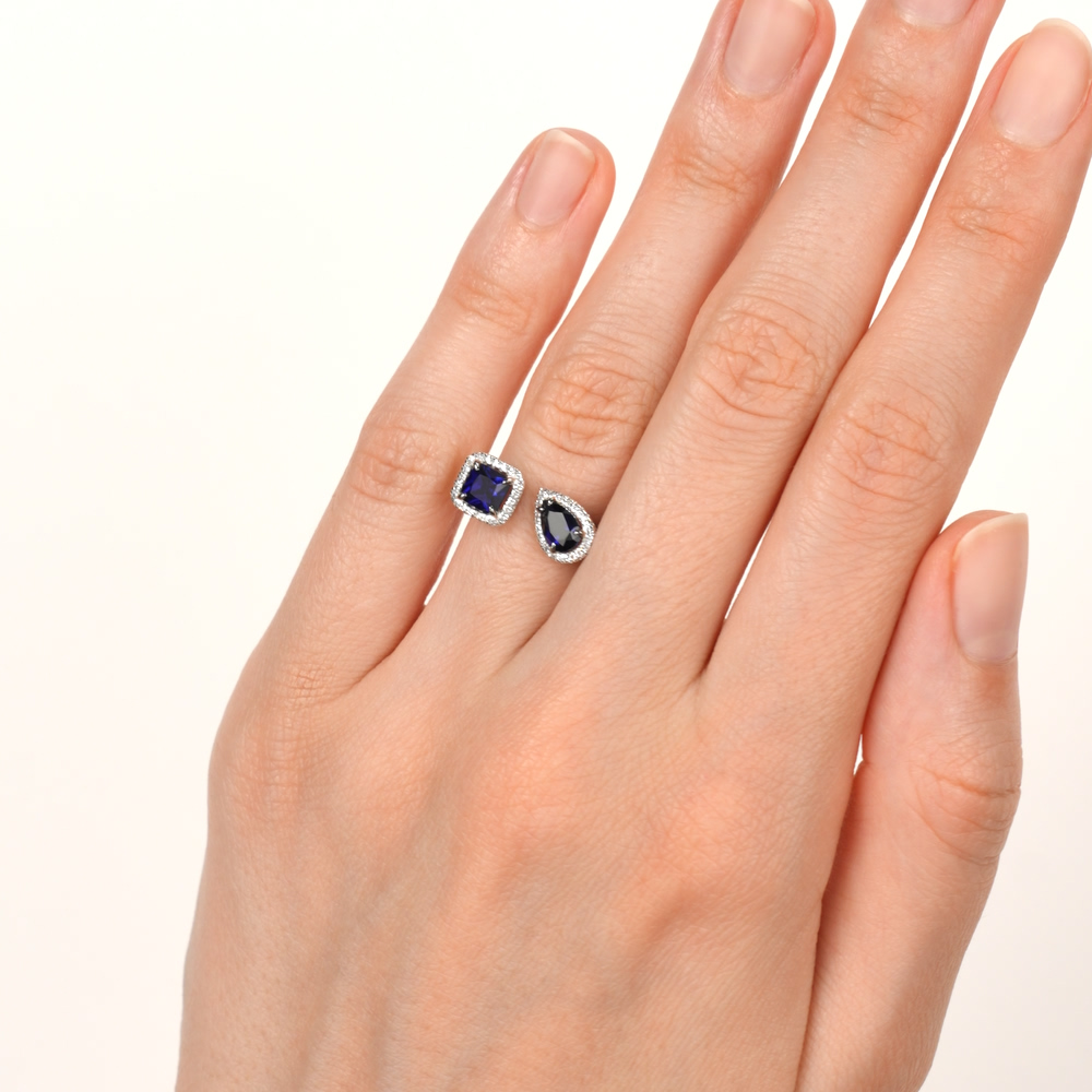Золотое кольцо с бриллиантами природными и сапфирами выращенными