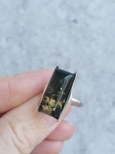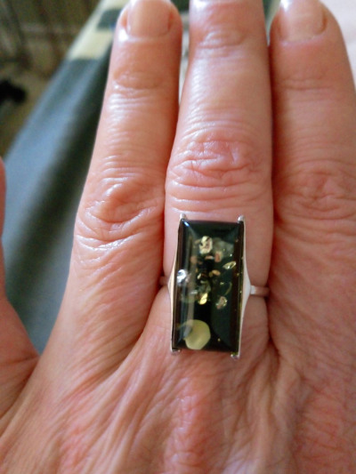 Брала в комплекте к серьгам. На кольце в янтаре меньше золотых всплесков , чем в серьгах, но все равно симпатичное.
