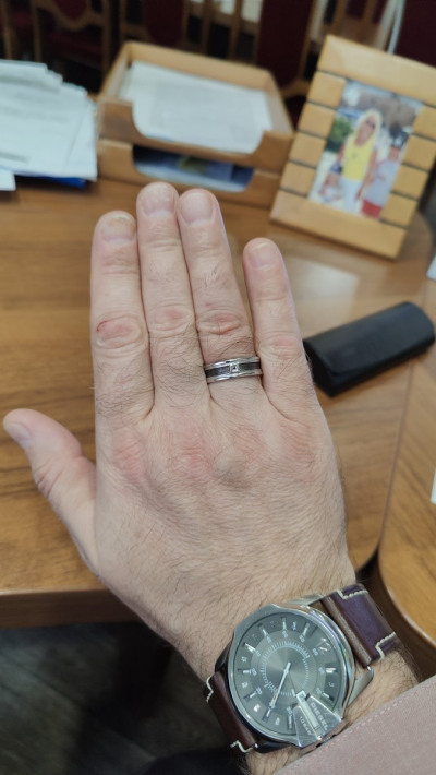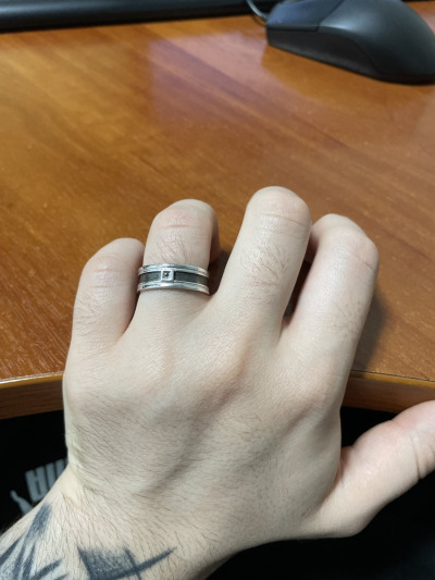 Мужчине в исламе золото нельзя носить, а если купить такое обручальное, то не будет отмазки не носить кольцо после свадьбы 😂😂😂 выглядит интересно, вес хороший, жениху сразу понравилось. Полностью литое, без пустот
