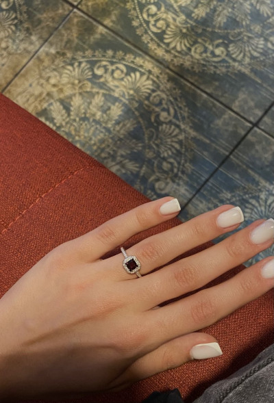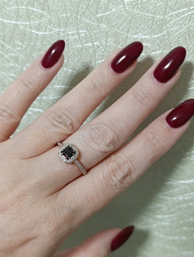 Выбирала между этим кольцом и другим колечком с гранатом. Выбрала это. Колечко смотрится очень достойно. Привлекает внимание. Гранат при разном освещении смотрится то сочно-бордовым, то глубоким темным цветом. Можно и в будни носить, и на выход - оно всегда смотрится достойно и актуально. Теперь это мое самое любимое колечко. Рекомендую к покупке.