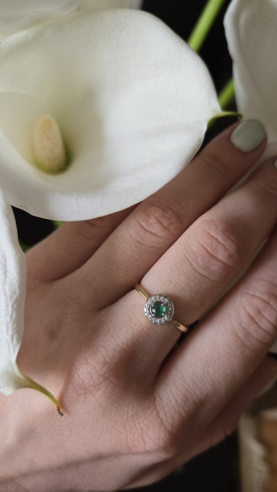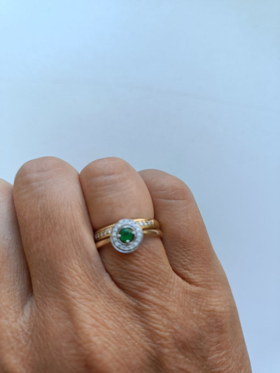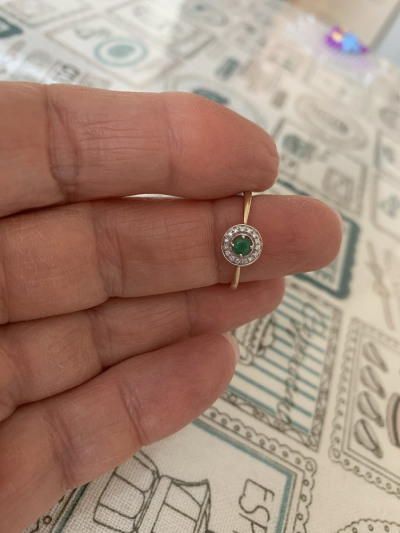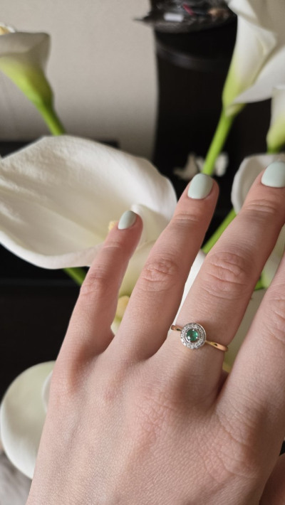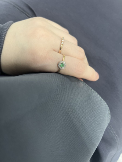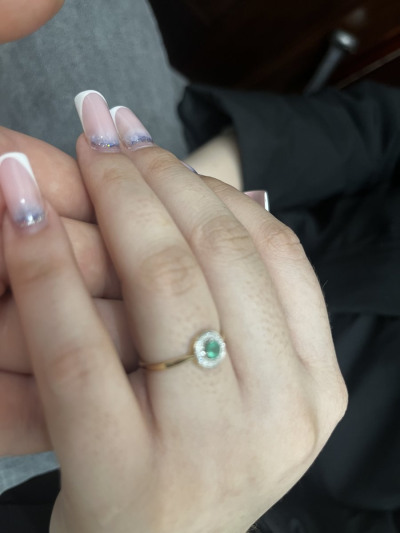 Колечко понравилось сразу как увидела с витрины , ждала не долго свое размера , вокруг бриллианты и по центру зеленый камушек🤩