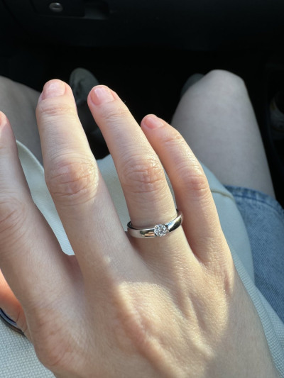 Хорошие параметры камня, вес кольца небольшой. Пока сверкает, смотрится достойно. Отличный вариант альтернативы простого обручального кольца