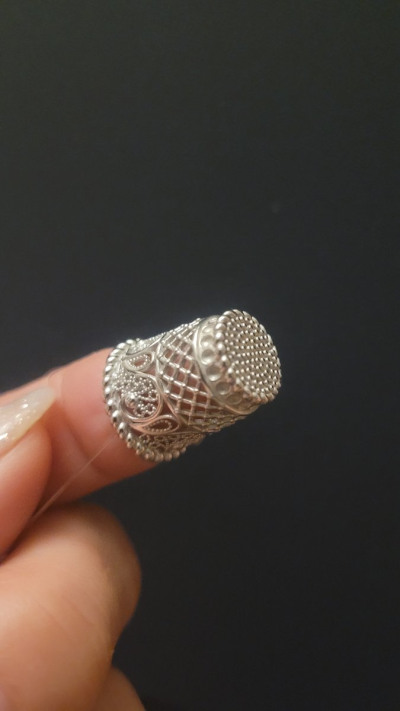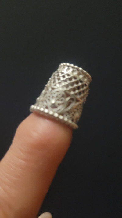 У меня появилась милая серебряная штучка-ажурный наперсток. Как я рада покупке. Теперь мой пальчик надежно защищен.