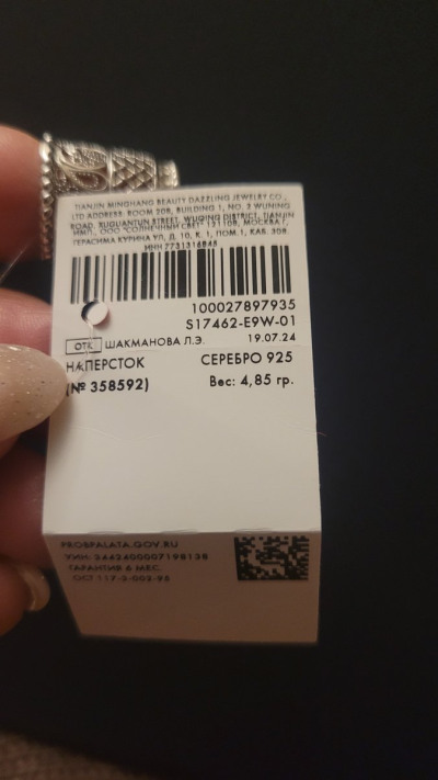 Напëрсток красив. Тонкая изящная работа. Настораживает то, что на бирке не указан производитель, на само изделие нет электронного сертификата качества(такое впервые). Где сделали? Кто? Из чего( проба тоже отсутствует) ?